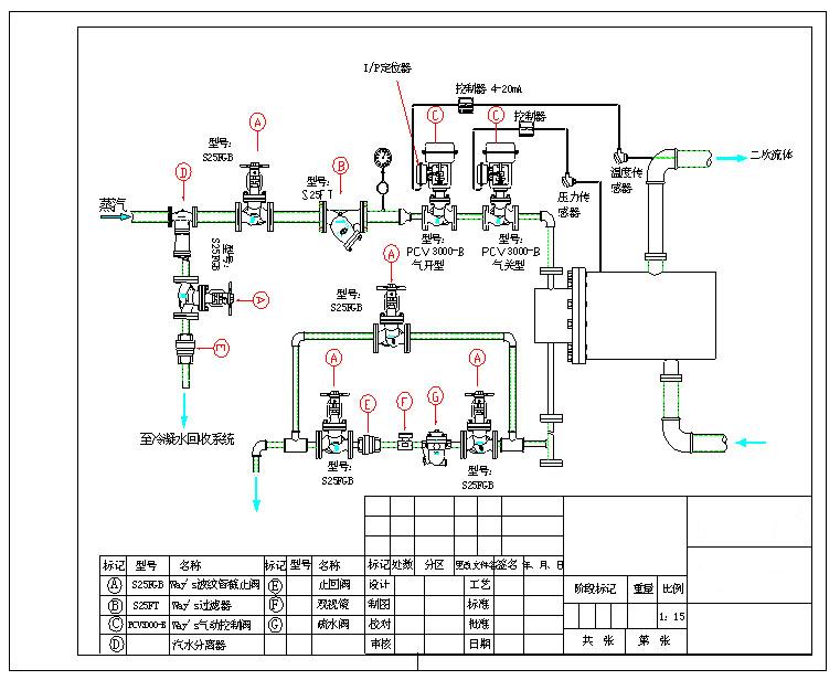 温度调节阀组合使用气动调节阀的温控式换热器系统图