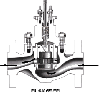 重庆建峰化肥有限公司化肥厂是一个年产300KT合成氨/520KT尿素的大型天然气化肥装置。在系统自动控制中,有许多调节阀在发挥着重要的作用。在这些调节阀中,套筒式调节阀占有比例达60%以上。套筒式调节阀的工作原理见图一:介质进入阀腔内,在关闭的时候,有部分流体通过阀芯上部的平衡孔产生压力和阀芯下部的介质产生的压力平衡,也就是使阀芯所受的不平衡力相互抵消,所以对阀芯上开有平衡孔的套筒式阀又称为压力平衡式阀。它具有流量大、许用压差高、防堵塞等优点,但在大口径(DN150mm以上)时普遍存在泄漏量大的缺点。泄漏量大在一定程度上造成系统消耗高、调节品质差,系统稳定性下降、环境污染等问题。