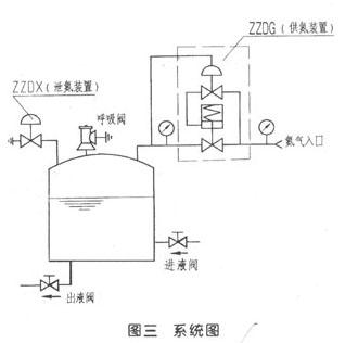 氮封阀(氮封装置)是由ZZDG型指挥器操作型自力式供氮阀(这里简称供氮阀)和ZZDX型自力式泄氮阀(简称泄氮阀)两大部份组成。当罐内压力升高超过设定值时,供氮阀关闭,泄氮阀打开(罐顶未设呼吸阀,或呼吸阀故障打不开),将罐内多余压力泄放。在储罐内压力降低时,泄氮阀处于关闭状态,供氮阀打开,向罐内注氮气。供氮阀阀前压力最好在1.0Mpa以下,现场压力较高时,可在供氮阀前安装一只ZZYP型自力式压力调节阀将压力减至:1.0 Mpa以下,以提高可靠性和使用效果。