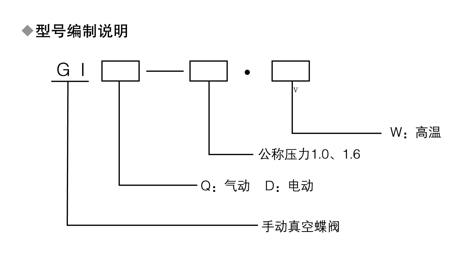 气动高真空蝶阀型号编制说明: