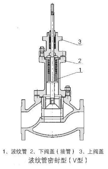气动薄膜波纹管密封调节阀由气动薄膜执行机构和波纹管密封的阀门两部分组成。其阀芯部件采用波纹管密封结构,上阀盖顶端仍有填料密封,形成两道密封,可严格防止介质向外泄漏,因此适用于调节剧毒、贵重、易挥发或易渗透的工艺介质。