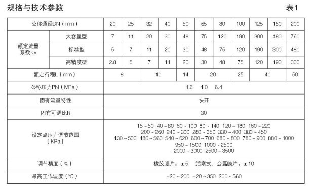 自力式压力调节阀的调节范围设定及规格参数: