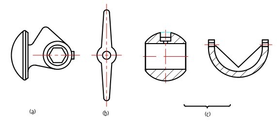 图2a为偏心旋转阀芯,用于偏心旋转阀。图2b为中线式蝶阀的蝶形阀板,有标准平阀板、翘曲的阀板,以及用于偏心蝶阀的带尾部的阀板三种。图2c为球形阀芯,用于球阀,球体上钻有一个通孔,用于O形球阀;V形阀芯的扇形球体上有V形开口或抛物线开口,两边支承在短轴上,用于V形球阀。V形开口的球体,也可以改良为U形开口,以增大流通能力,它的流量特性是改良的等百分比曲线。