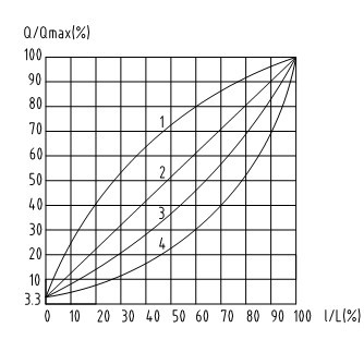 而等百分比流量特性的曲线斜率即放大系数是随行程的增大而递增的,在同样的行程变化值下,流量小时,流量变化小;流量大时,流量变化大。