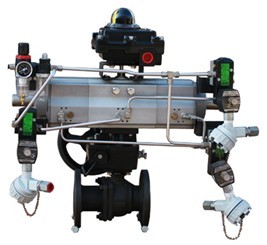 气动活塞三段式切断球阀是在气动活塞式切断球阀的基础上设计的。阀体部分与气动活塞式切断球阀相似;主要差别在于执行机构的设计与操作上。气动活塞三段式切断球阀的执行机构可以实现从全开、半关和全关;或者从全关、半开和全开的动作过程;适合使用在加料和放料快结束的时候,需要一定的小流量(相对于全开时的流量)控制场合。
