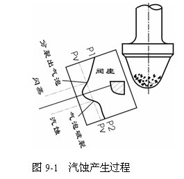 在节流口介质的高速流动,其速度能急剧增加,根椐能量守恒原理,压力能必将急剧下降,当压力低于饱和蒸气压(PV)后,液体就会分裂出气体来,形成气液双相流动,这就是所谓的闪蒸;当介质流经节流口后,节流速度开始逐渐下降,压力开始逐步恢复,当压力恢复到大于饱和蒸气压时,汽泡破裂回到液态,就在破裂的瞬间,产生强大的压力冲击波,使作用的阀芯、阀座表面的材料冲击成蜂窝状的小孔,并引起振动和噪音,这就是所谓的汽蚀。引起闪蒸的压差条件是:△P=FL2(Pl-Pv),其中FL为压力恢复系数,P1为阀前压力,Pv为入口温度下饱和蒸汽压。