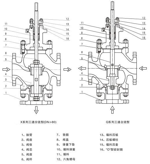 VQE/VXE型导热油专用电动(分流/合流)三通调节阀标准规格