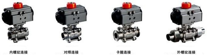 气动三片式内螺纹球阀及对焊连接球阀分为整体式(一片式)、两段式及三段式。阀体铸造采用硅溶胶工艺,结构合理、造型美观。阀座采用弹性密封结构,密封可靠,启闭轻松。阀杆采用有倒密封的下装式结构,阀腔异常升压时,阀杆不会被冲出。二片式、三片式球阀连接形式另有对焊(BW)承插焊(SW),并均可带国际标准ISO支架平台和锁定装置。可设置90°开关定位机构,根据需要加锁以防止误操作,驱动方式:手动、电动、气动。