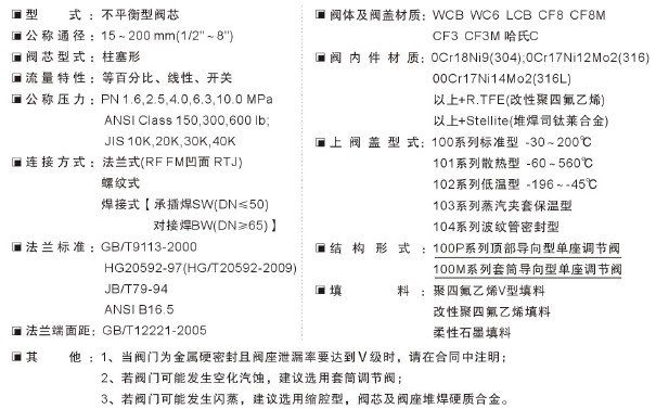ZJHP型气动薄膜单座调节阀的型式标准及性能选型: