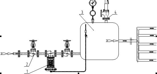 管道配置:1、自力式压力调节阀 2、截止阀 3、储气罐 4、安全阀