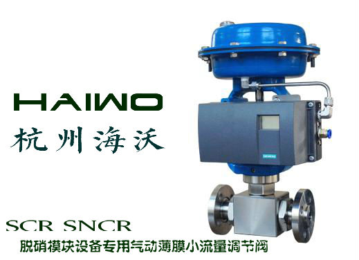 气动薄膜小流量调节阀专门用于SCR/SNCR烟气脱硝系统,使用介质一般为20%浓度氨水或尿素,通过上位机的控制,精准调节氨水或尿素的喷射量,从而达到更高标准的烟气脱硝效率,符合烟气环保要求。